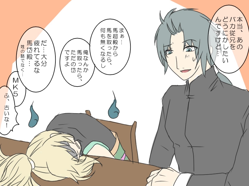 ホリリさんからのリクで、「趙雲と馬超の愚痴を言う馬岱」でした。